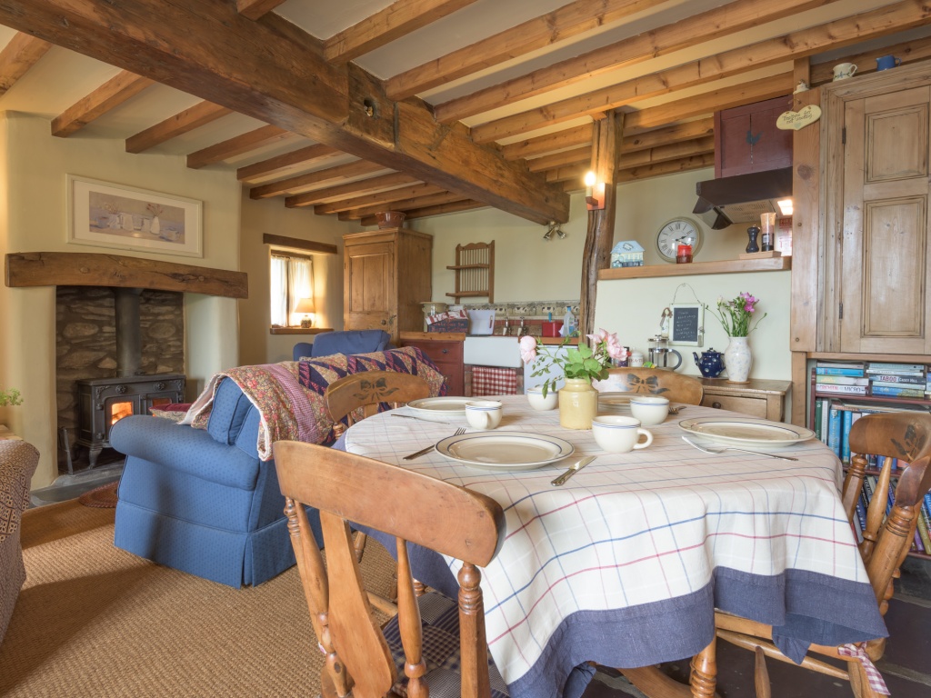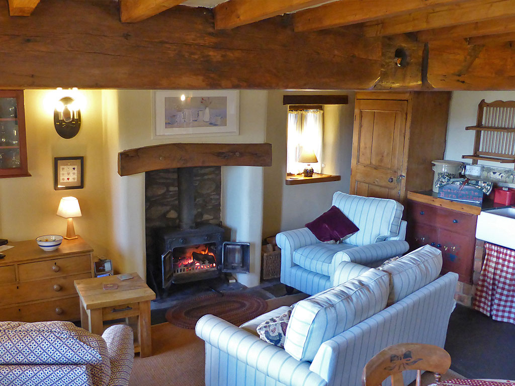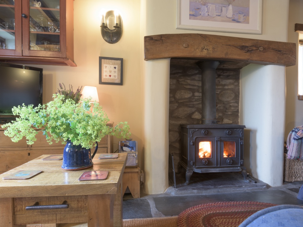 There is a spacious open plan sitting area, with flagged floors, wood burning stove and large window to the front of the property making a very airy feel. A colour television, dvd player & CD radio are provided for your use, and heating is provided by storage units and a wood burning stove (logs and electricity are included in the price.