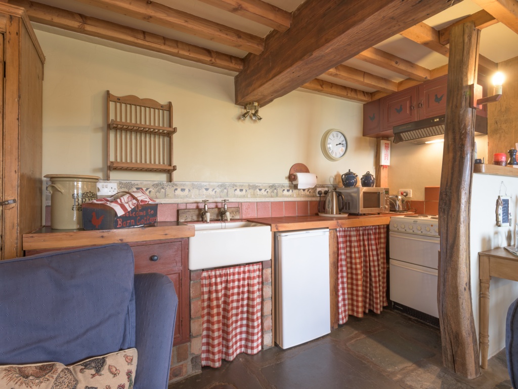 Barn Cottage is let on self catering basis. There are two bedrooms, one double and one twin bedded plus one bathroom. The village stream flows nearby where ducks and hens roam. Tea / coffee and a small welcome basket of home-made bread, our free-range eggs and preserves awaits you.