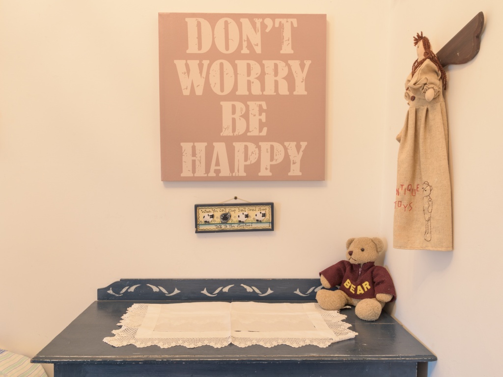 The room is decorated in a unique way with Chris's collection of antique baby linen.